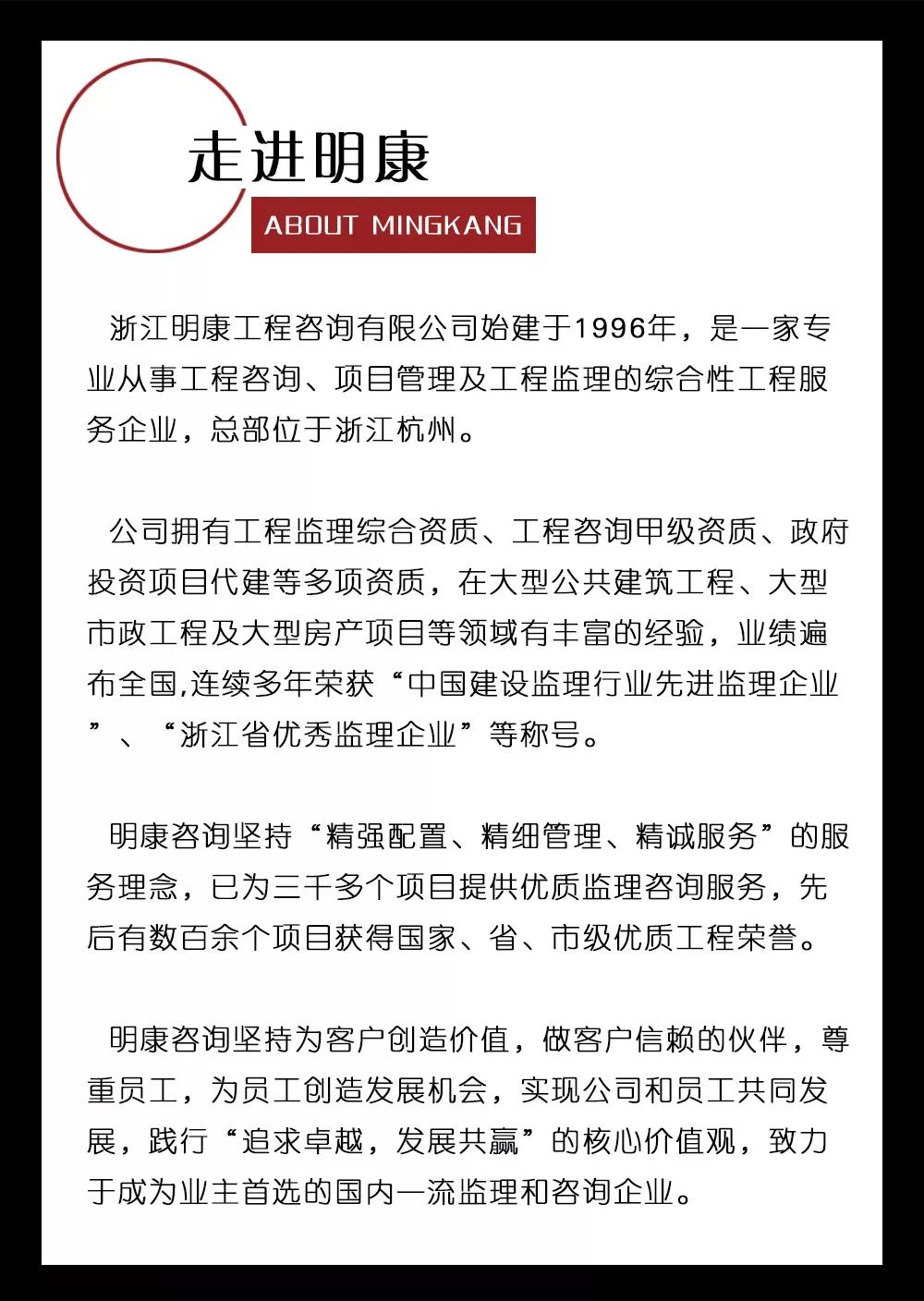 這里有面包也有詩和遠(yuǎn)方 | 2019年浙江明康工程咨詢有限公司社會招聘發(fā)布日期:2019-03-12