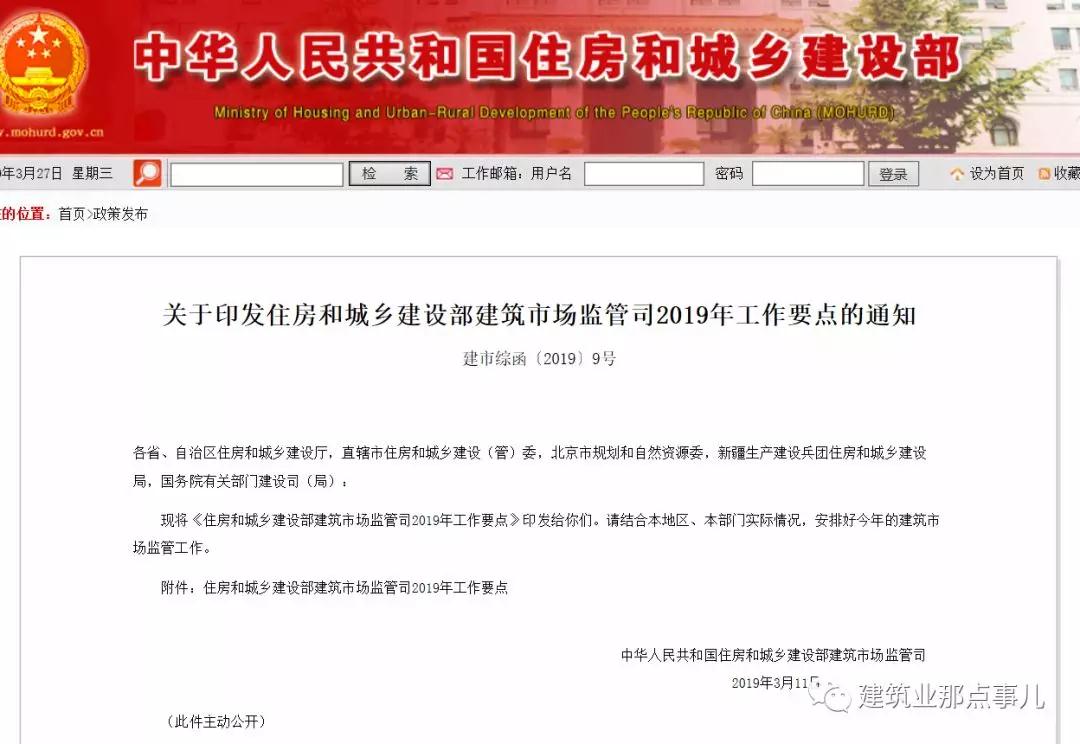 重磅!資質、建造師、招投標大改就在今年。剛剛住建部市場監管司發布2019年工作要點!發布日期:2019-03-27