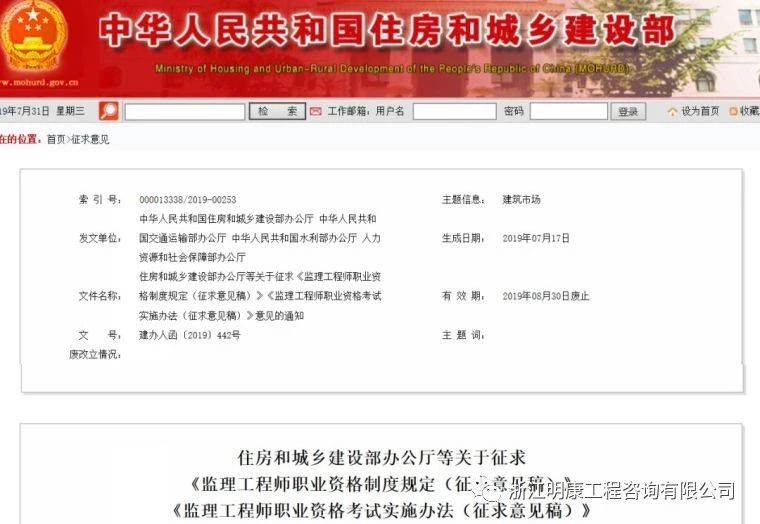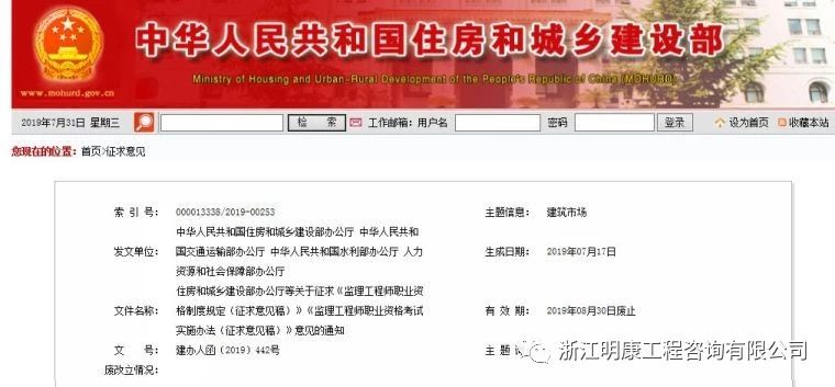 行業(yè)資訊 | 住建部:取消中級(jí)職稱報(bào)考條件,工程/水利/公路水運(yùn)監(jiān)理擬合并為一!發(fā)布日期:2019-08-07